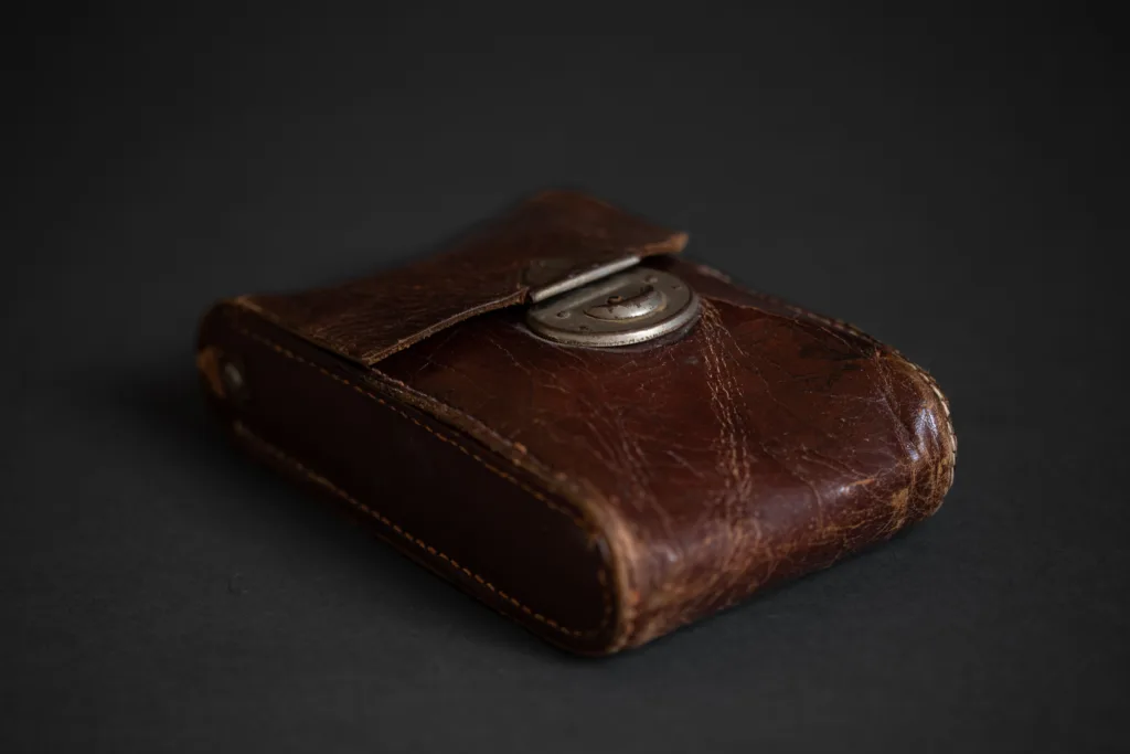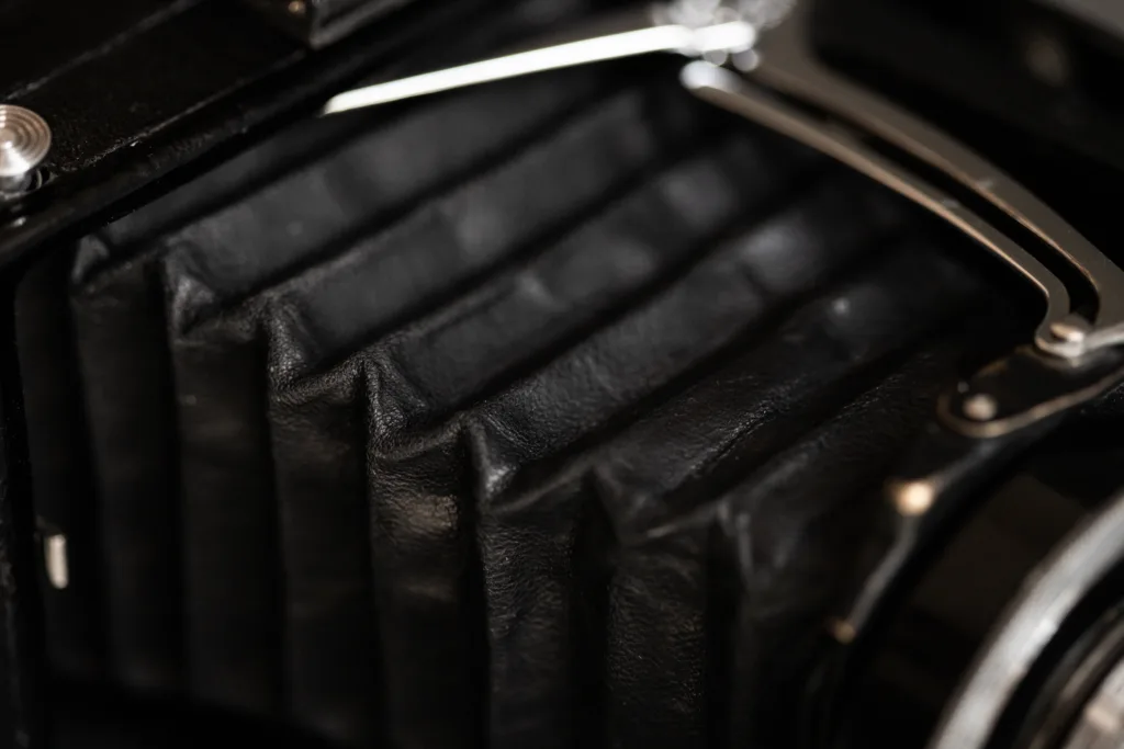 When I got the camera, it seemed pretty beat up but luckily majority of it was just the appearances. For example the camera was hastily/lazily folded the last time it was put away (for years) and had thus been permanently disfigured making it look bad and blocking part of the frame. I removed the leather, moisturized it with water, folded it properly and let it dry out – It worked out well and started to fold properly again. You can still see the wrinkles, but it looks much better and is not blocking the frame anymore.
